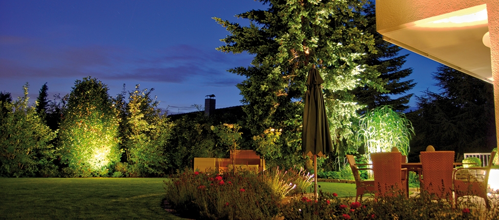 Wir beleuchten Terrassen, Wege und Einfahrten sowie Sträucher, Ihren Pool oder Schwimmteich und weitere Gartenhighlights.